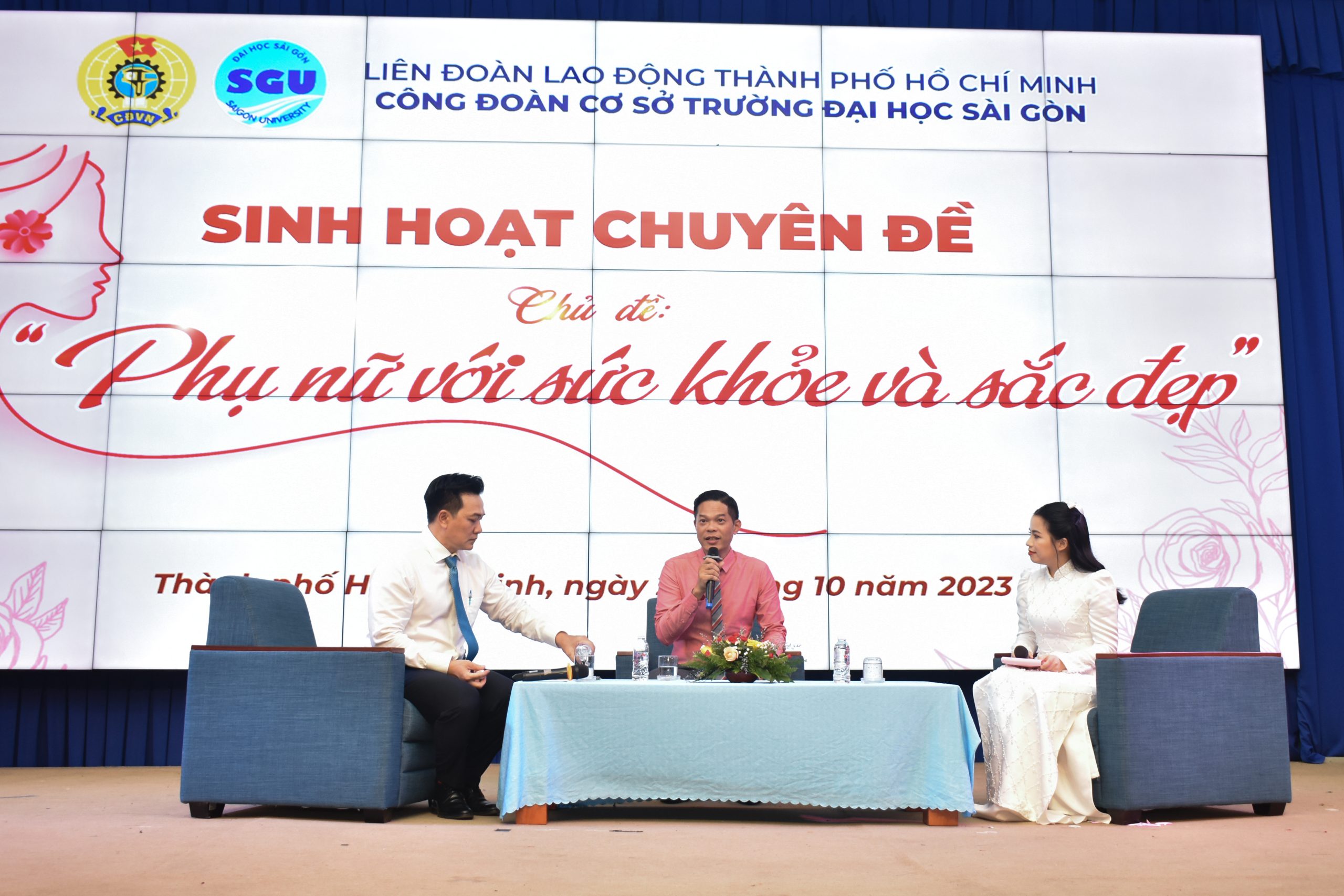 Cũng trong buổi lễ, Công đoàn Trường tổ chức Sinh hoạt chuyên đề – Chủ đề: “Phụ nữ với sức khỏe và sắc đẹp” có sự tham gia chia sẻ, trao đổi của Tiến sĩ, Bác sĩ Bùi Chí Thương – Trưởng Khối Sản Bệnh viện Nhân dân Gia Định; Giảng viên Bộ môn Sản – Đại học Y Dược Thành phố Hồ Chí Minh. Qua những câu hỏi trao đổi cùng Bác sĩ, mọi người đã biết thêm rất nhiều kiến thức bổ ích liên quan đến vấn đề chăm sóc sức khỏe phụ nữ.
